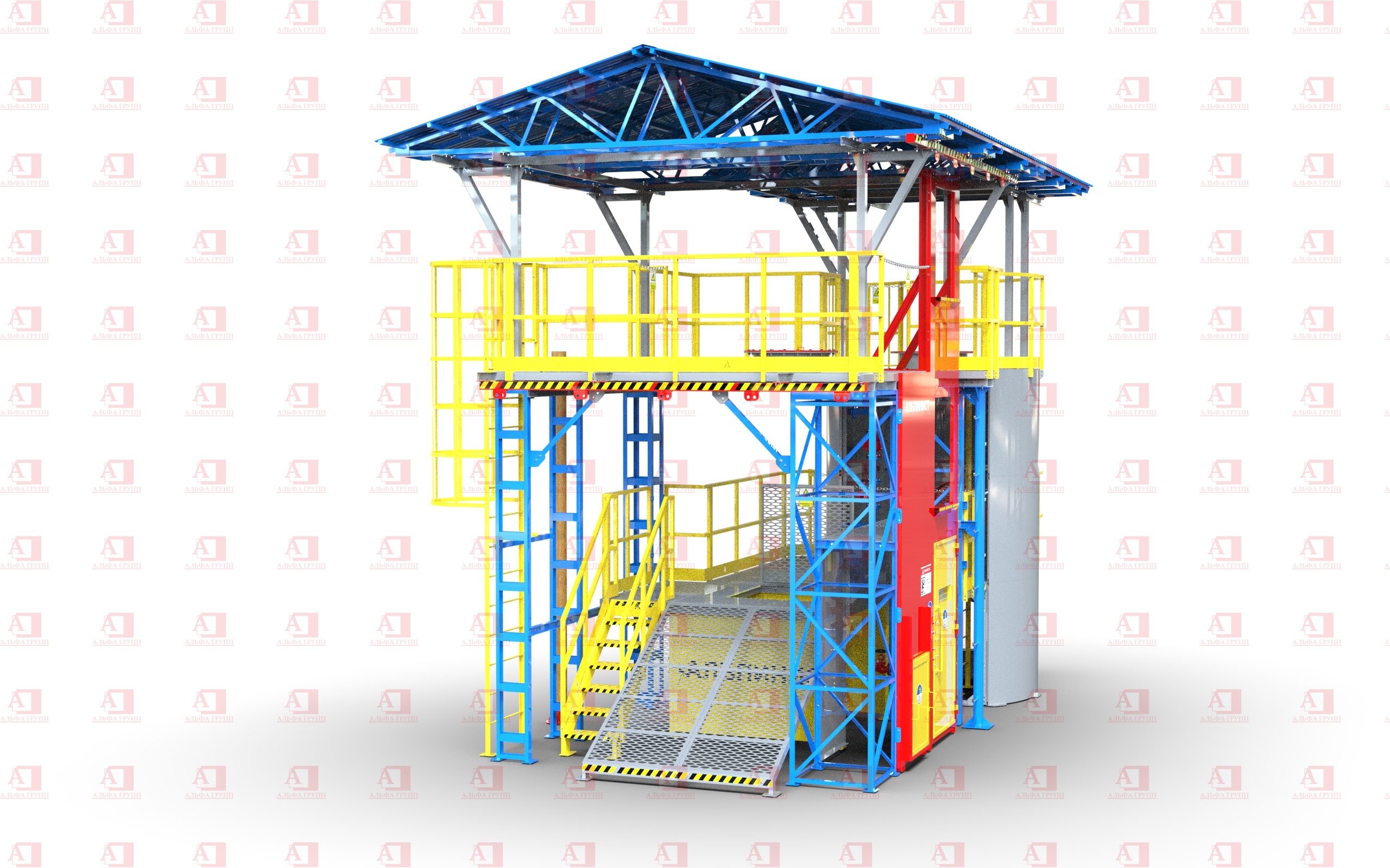 Доступ на рабочую площадку второго уровня осуществляется по стальной маршевой лестнице.